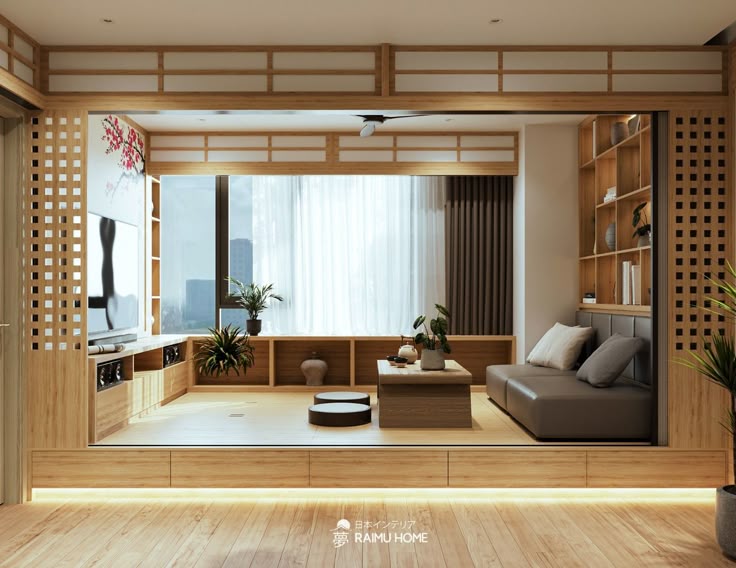Không gian sống Nhật Bản thanh lịch và ấm cúng, tạo nên khu vực tiếp khách và giải trí như một “ốc đảo” ấm áp giữa ánh sáng tự nhiên tràn ngập – Nguồn: Sưu tầm